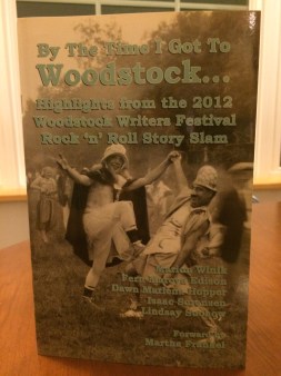 I performed my short story “Three Days of Pee, Love and Music” at the 2012 Woodstock Writers Festival (now Woodstock Bookfest) Rock ‘n’ Roll Story Slam. I was one of three runners-up, and all the winning stories were published in a chapbook sold in a limited run online and at the Golden Notebook in Woodstock, NY.